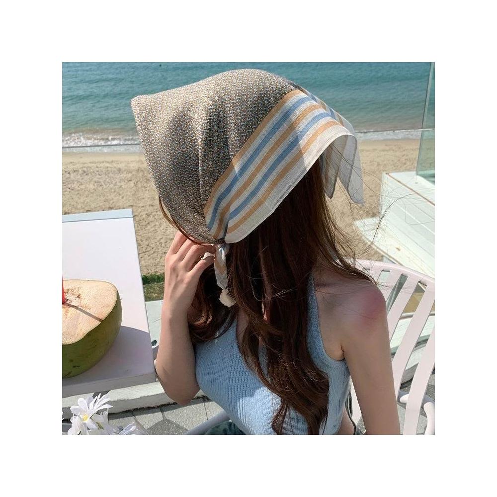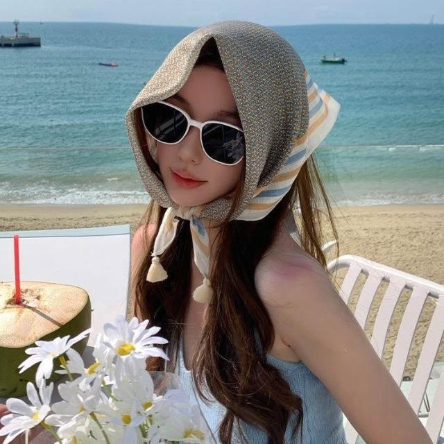 Imanchen甜美少女海邊拍照帶穗百搭絲巾復古裝飾包頭潮流髮帶森系薄款絲巾