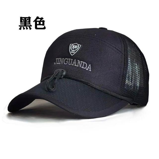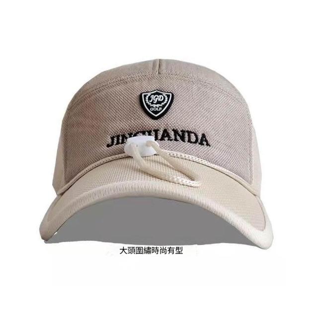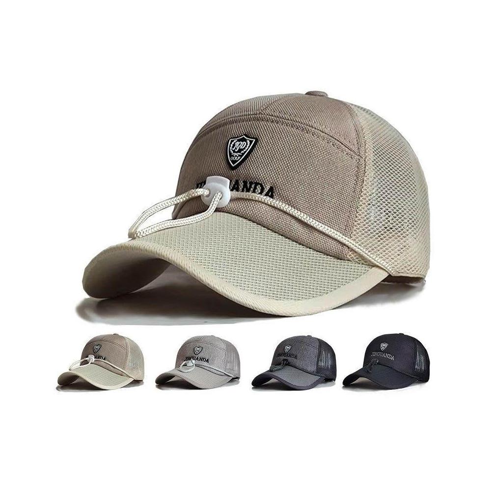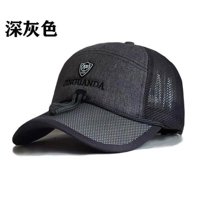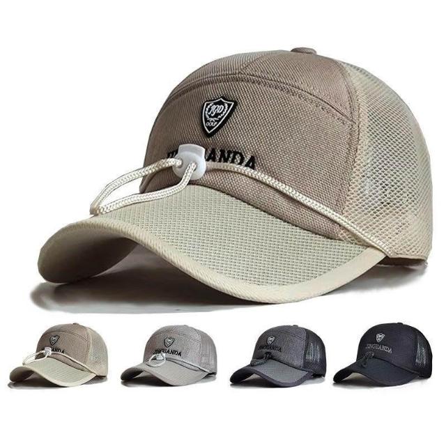 Imanchen帽子男士棒球帽夏季亞麻面料網眼圓頂長檐中老年鴨舌帽帶防風繩