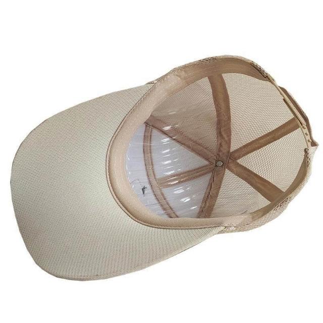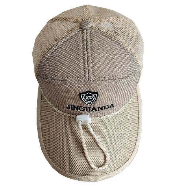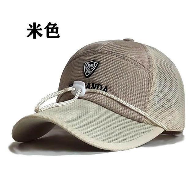Imanchen帽子男士棒球帽夏季亞麻面料網眼圓頂長檐中老年鴨舌帽帶防風繩