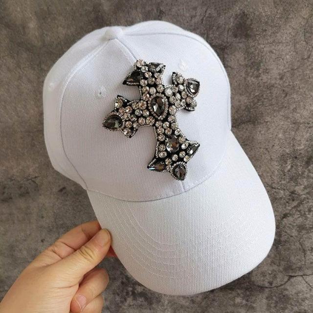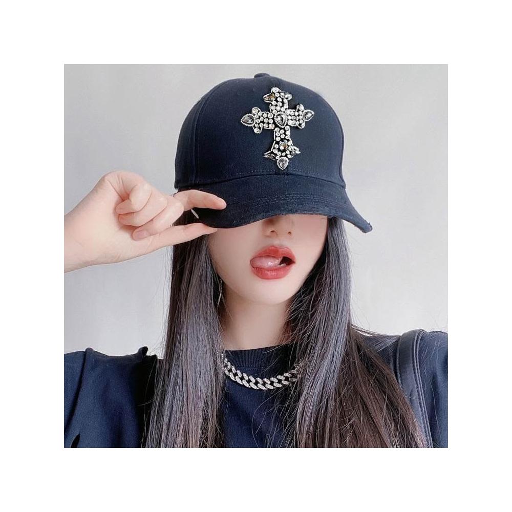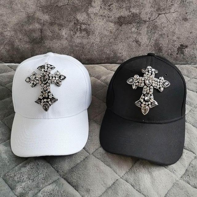 Imanchen閃亮水鑽寶石十字架潮牌棒球帽防曬遮陽帽子夏男女時尚硬頂鴨舌帽