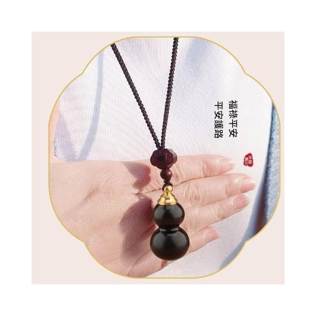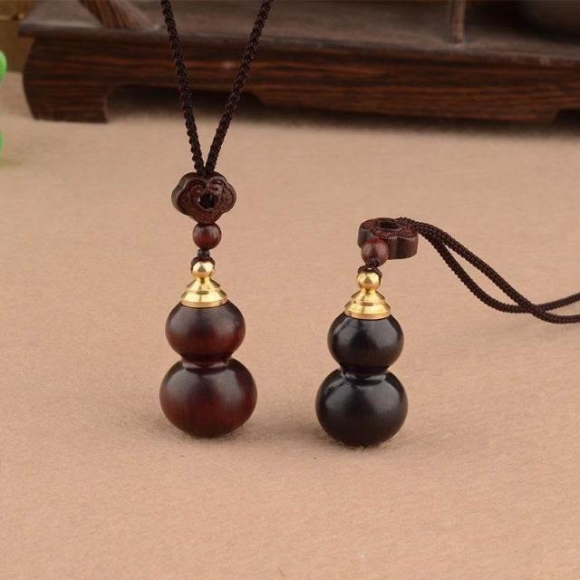 Imanchen可打開空心葫蘆紫檀木項鍊男女復古百搭黑檀木吊墜毛衣鏈長款掛件