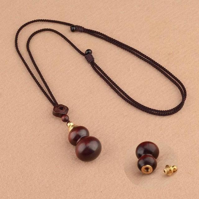 Imanchen可打開空心葫蘆紫檀木項鍊男女復古百搭黑檀木吊墜毛衣鏈長款掛件
