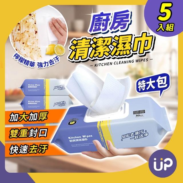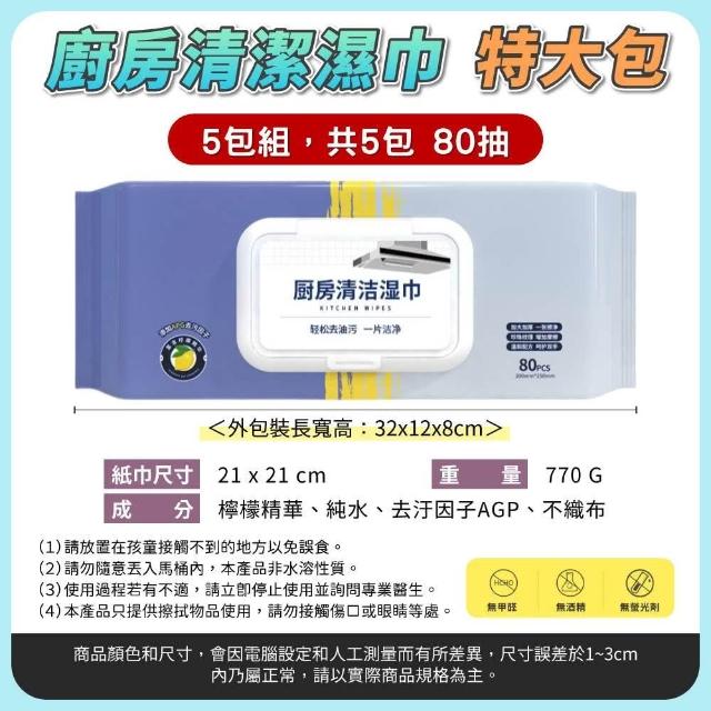 廚房清潔濕巾 特大包 80抽《5入組》加厚加大 廚房濕紙巾 濕紙巾 廚房濕巾 一次性抹布 拋棄式抹布 廚房紙巾