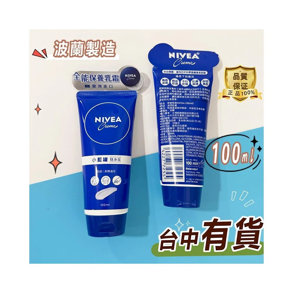 公司貨 NIVEA 妮維雅 妮維雅霜100ml 隨身版 小藍罐/身體乳霜/臉部身體適用全身可用修復乳霜 幹燥肌 預防乾裂