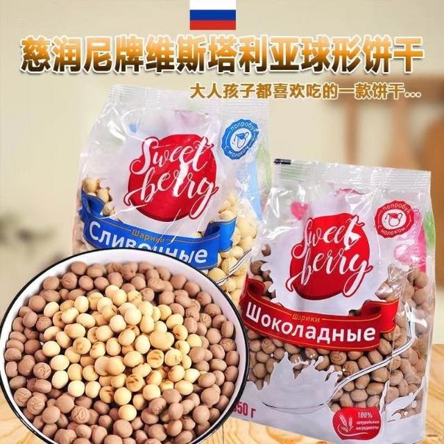 Phoebejos可代購☜可批發☞俄羅斯餅幹進口巧克力豆奶油味球形餅幹學生早餐食品
