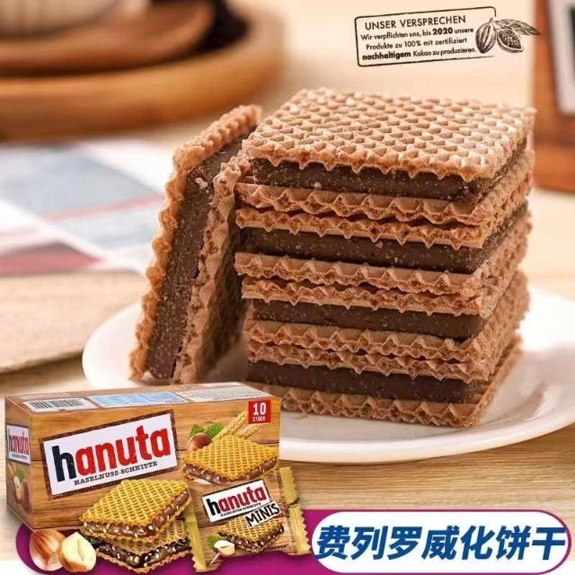 Phoebejos德國進口哈努搭Hanuta榛子巧克力 夾心威化餅幹 盒裝休閒零食