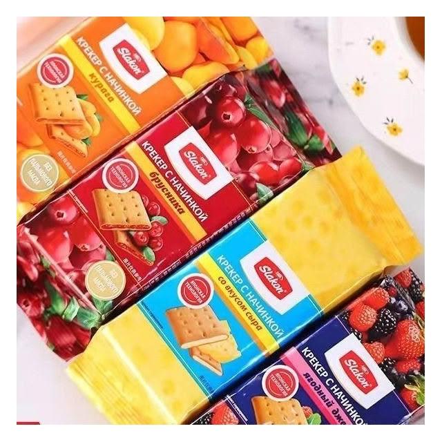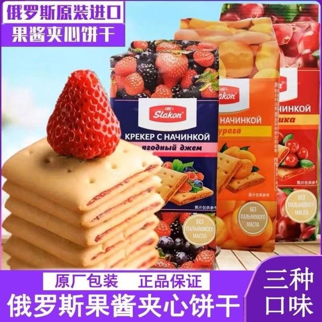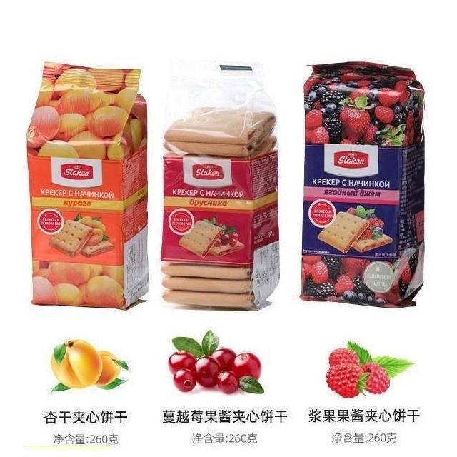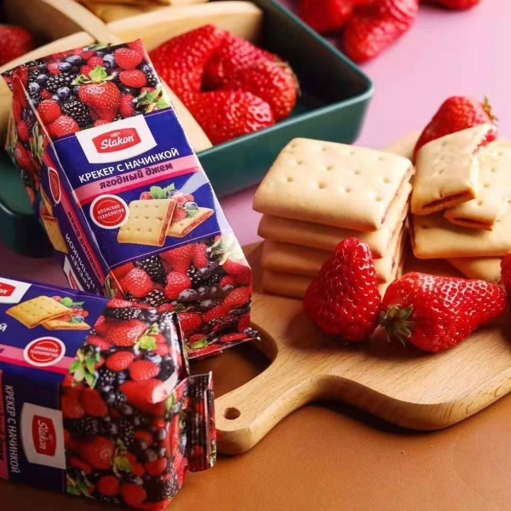 Phoebejos7HEZ 俄羅斯進口漿果醬夾心軟餅幹休閒早餐代餐原裝小零食品批髮便利店