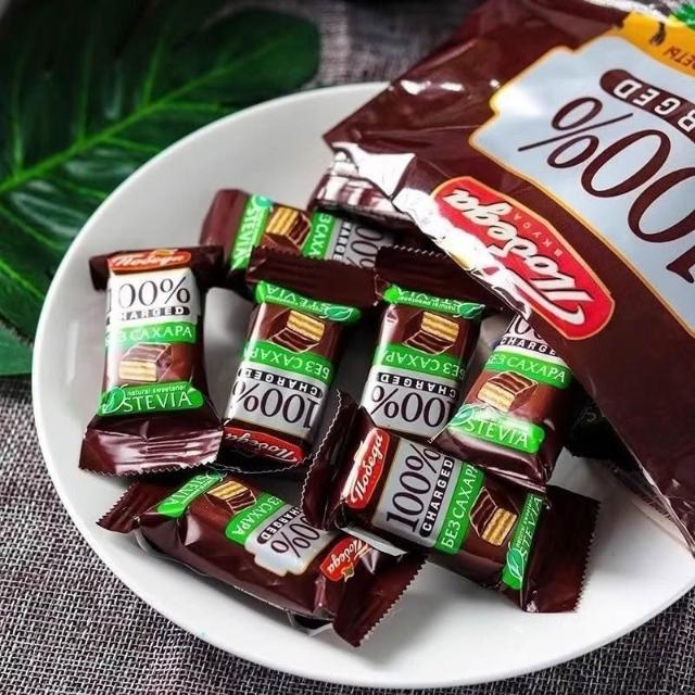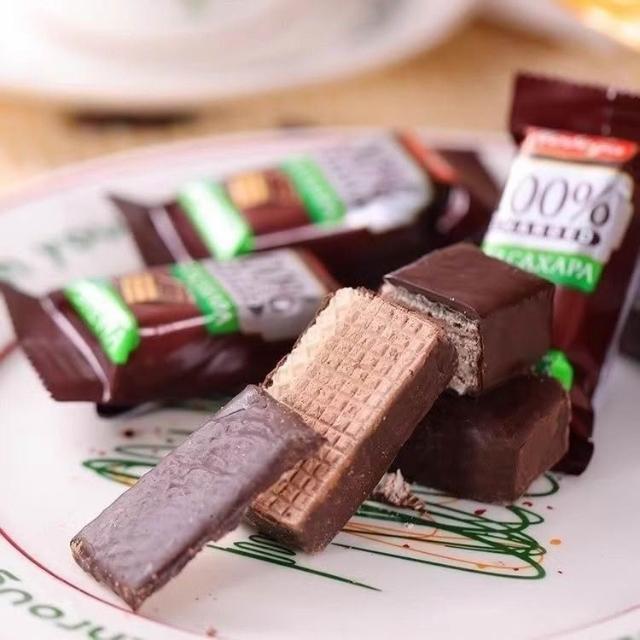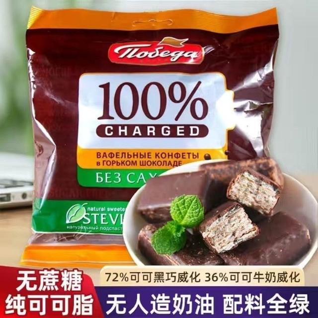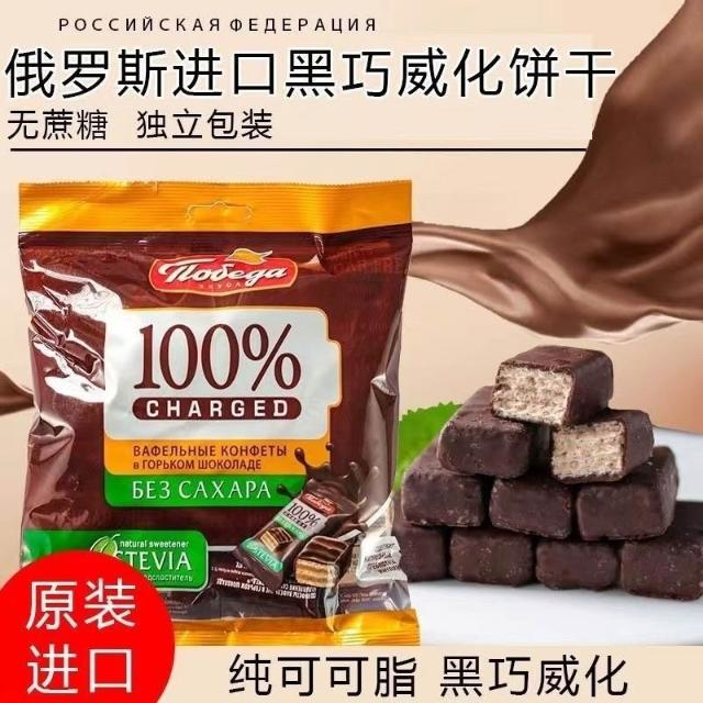 Phoebejos5F7J 俄羅斯原裝進口巧剋力微苦純可可無蔗糖黑巧剋力威化餅幹脂零食