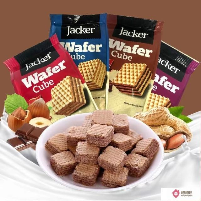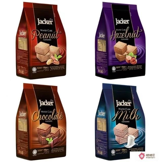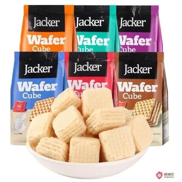 Phoebejos馬來西亞進口休閑零食Jack傑克方形威化酥餅干牛奶味食品100g 威化餅 威化酥