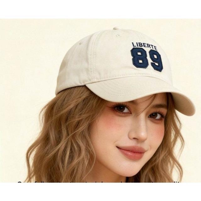 棒球帽韓版復古數字刺繡女寬檐大頭圍顯臉小百搭遮陽鴨舌帽情侶