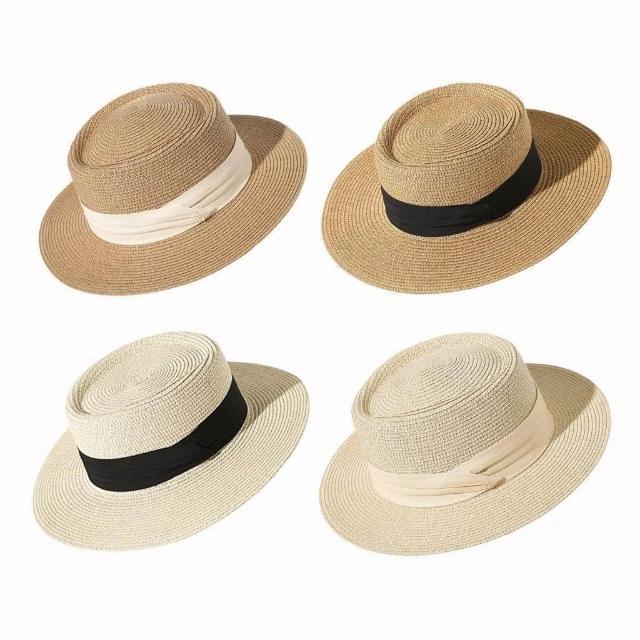 Dream Life-好物集平頂帽 法式 女款 大頭圍 平檐 禮帽 編織帽 夏季