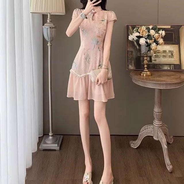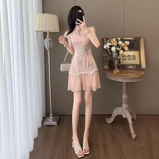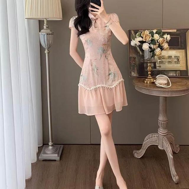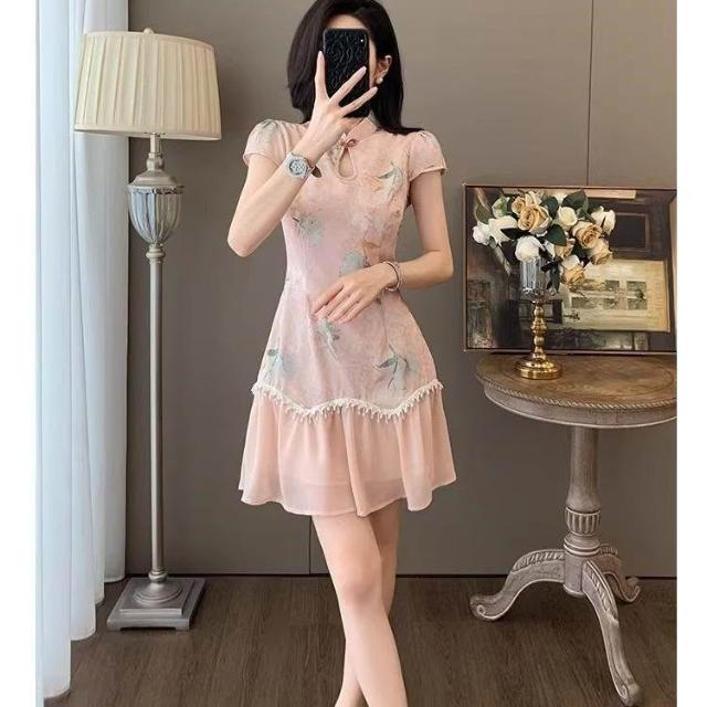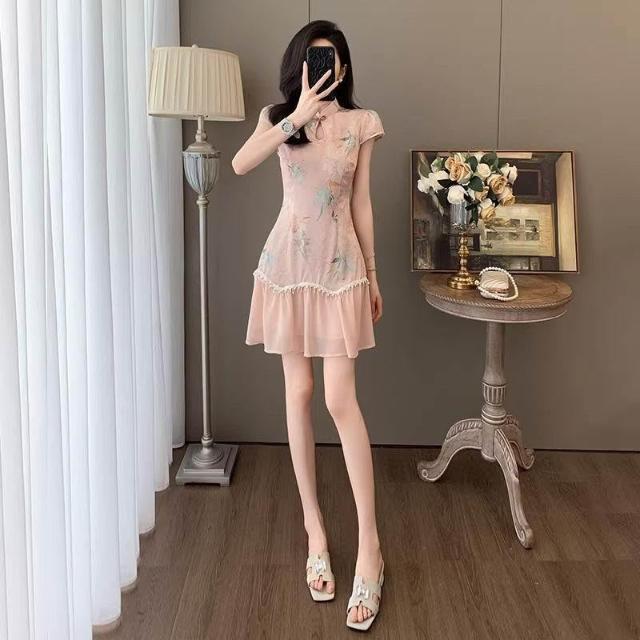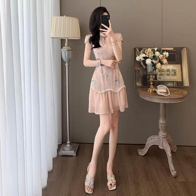 Dream Life-好物集旗袍 夏季時尚 氣質盤扣 復古旗袍裙 短袖中式國風 連衣裙 女