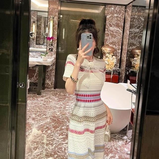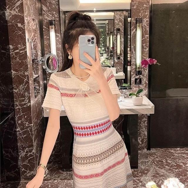 Dream Life-好物集連衣裙 大碼女裝 新款法式 氣質高級 條紋小香風 針織連衣裙