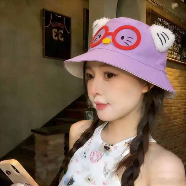 Dream Life-好物集漁夫帽 洋氣卡通 眼鏡框款裝飾 百搭可愛 動物款盆帽