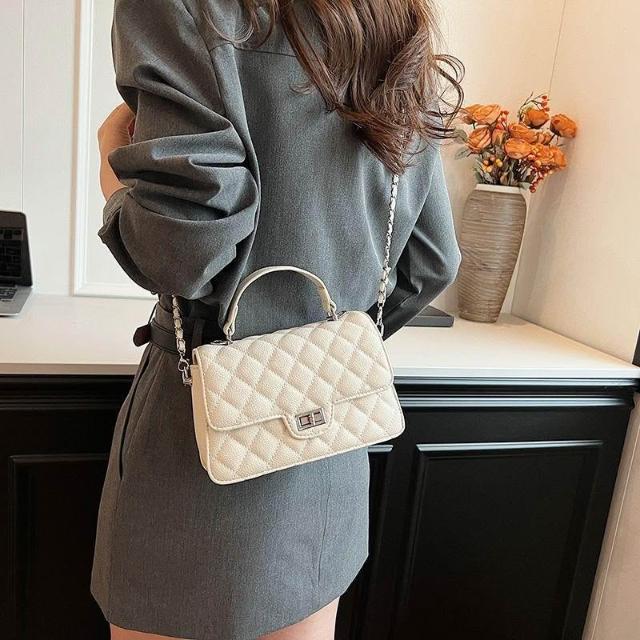 Dream Life-好物集單肩包 小香風 菱格鏈條設計 新款百搭 斜挎包 簡約通勤 手提包 腋下包
