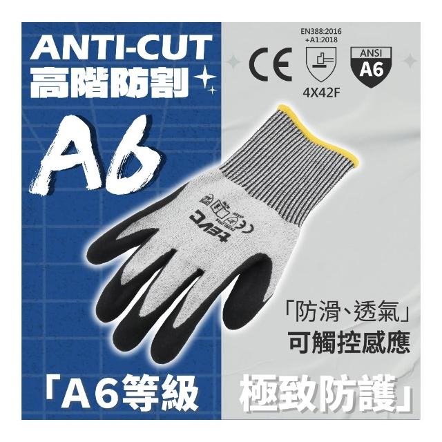 耐油防滑 耐磨 防割手套 防切割手套 歐盟認證 A6超高等級 可觸控 透氣 工作手套 搬運手套