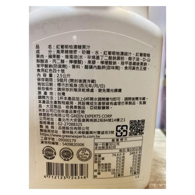 綠盟 福樹 紅葡萄柚濃縮汁2.5kg/瓶(全家限2瓶,7-11只能一瓶)
