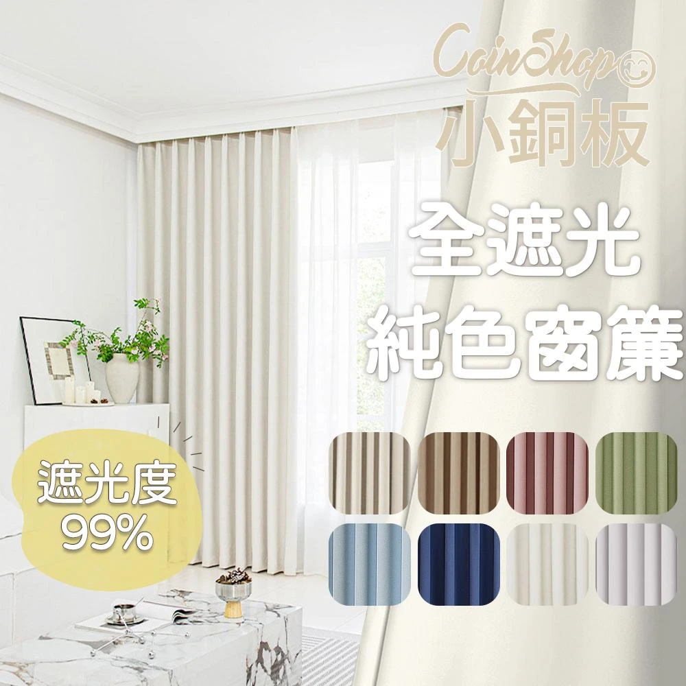 小銅板全遮光窗簾 100%遮光 寬100x高100-2片入-總寬200公分 半腰窗可用 多種安裝方式