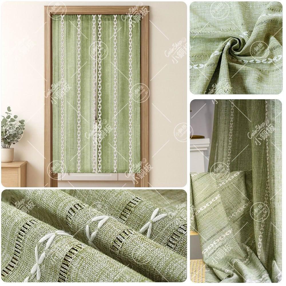小銅板鏤空編織門簾 門簾 簡約日式亞麻 紗簾透光不透人客廳隔斷簾 陽臺民宿風棉麻亞麻紗遮光布 咖啡廳門簾 文青門簾