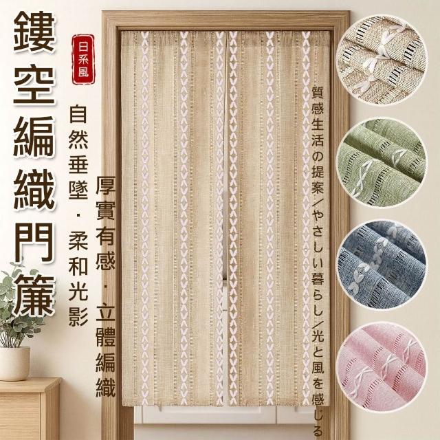 小銅板鏤空編織門簾 門簾 簡約日式亞麻 紗簾透光不透人客廳隔斷簾 陽臺民宿風棉麻亞麻紗遮光布 咖啡廳門簾 文青門簾