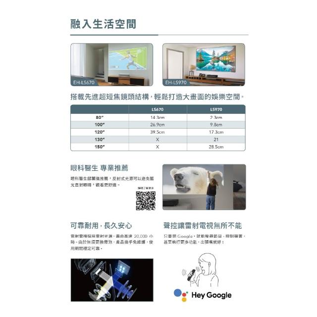 EPSONEPSON EH-LS970 4K智慧雷射電視 短焦投影機 投影機 雷射投影機 EPSON投影機