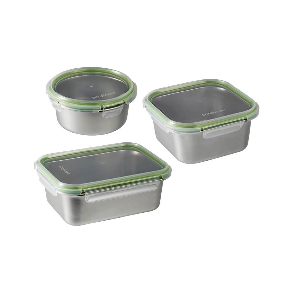 CorelleBrands 康寧餐具康寧不銹鋼可微波保鮮盒三件組 COR-3PCS