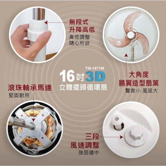 東銘 (12吋/16吋) 3D擺頭循環立扇 電風扇系列 TM-1277M TM-1671M