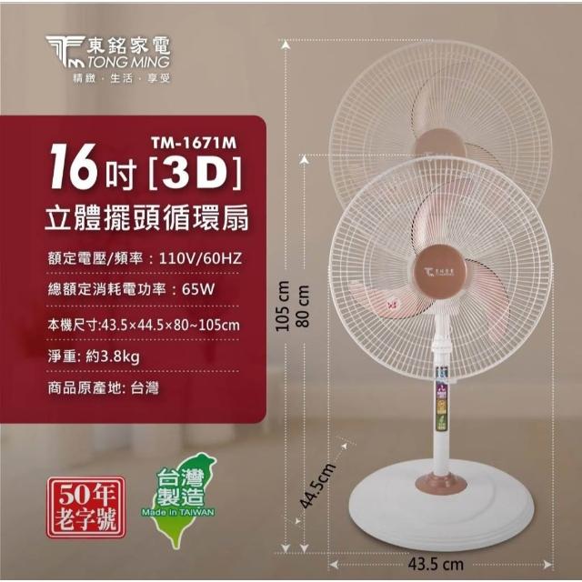 東銘 (12吋/16吋) 3D擺頭循環立扇 電風扇系列 TM-1277M TM-1671M