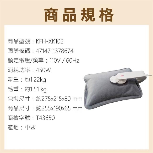 Kolin 歌林電熱敷袋 雙向插手電暖袋/熱敷袋/電熱水袋 /暖手袋 KFH-XK102