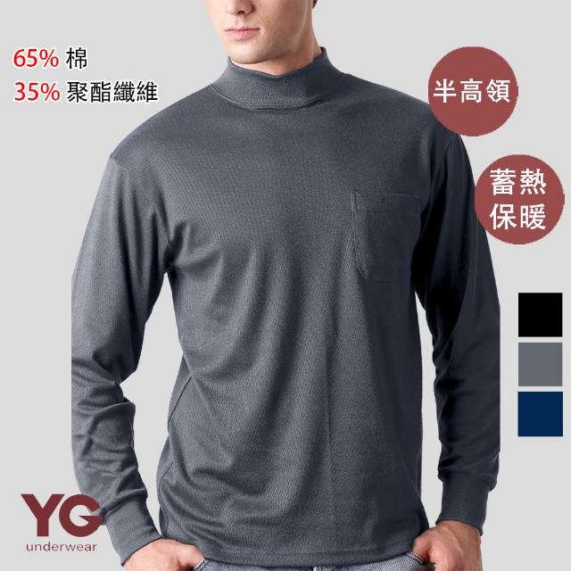 YG 天鵝內衣厚暖棉半高領長袖衫(黑.鐵灰.丈青/三色可選) 半高領 厚暖棉 排汗 保暖 舒適