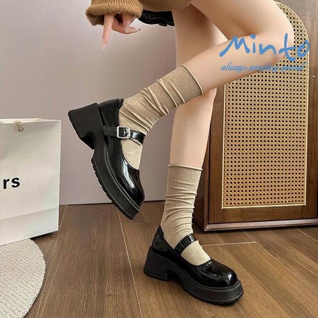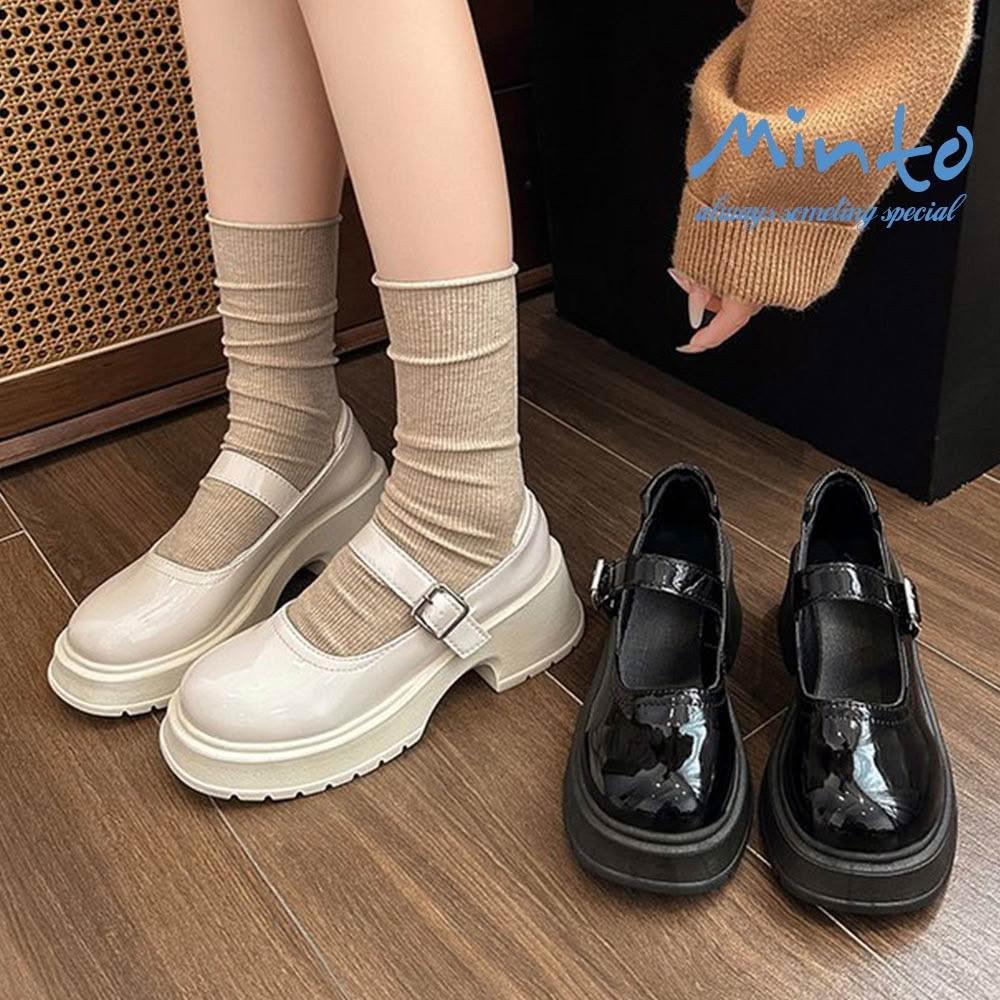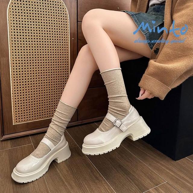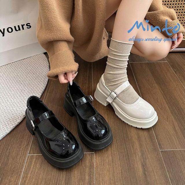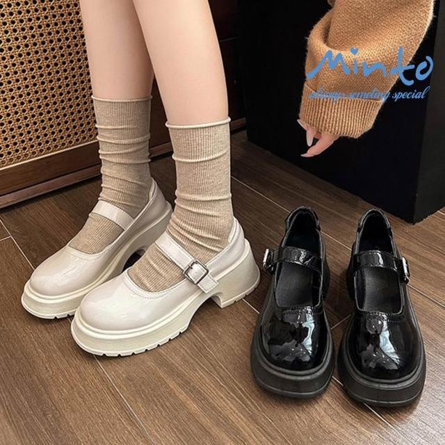 Minto👞 皮鞋 厚底瑪莉珍 法式白色粗高跟 瑪莉珍高跟鞋 法式一字帶厚底增高圓頭小皮鞋 蘿莉鞋 ~ 正常