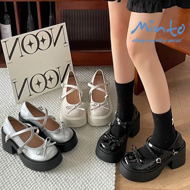 Minto👞皮鞋 銀色瑪麗珍鞋 法式淺口瑪莉珍鞋 蘿莉鞋 圓頭粗跟厚底瑪莉珍小皮鞋 厚底粗跟瑪麗珍鞋 ~ 正常