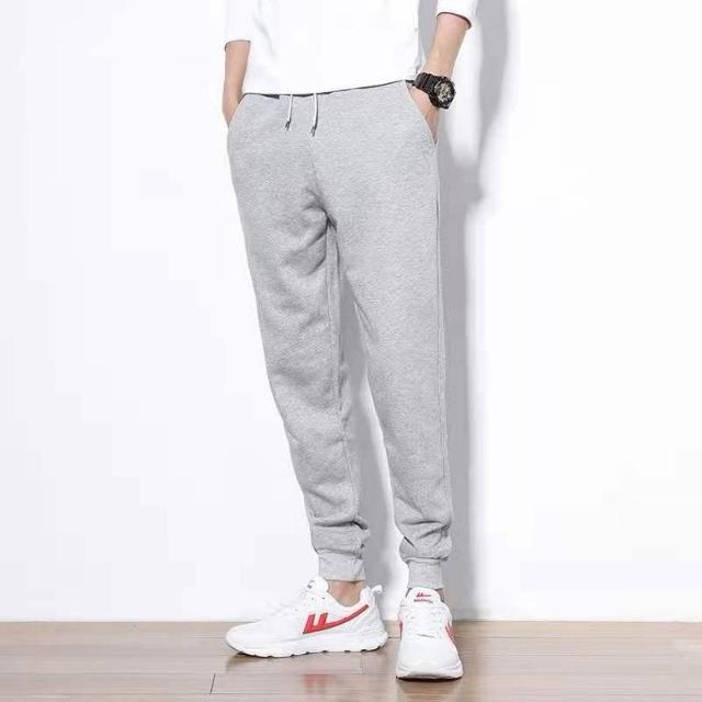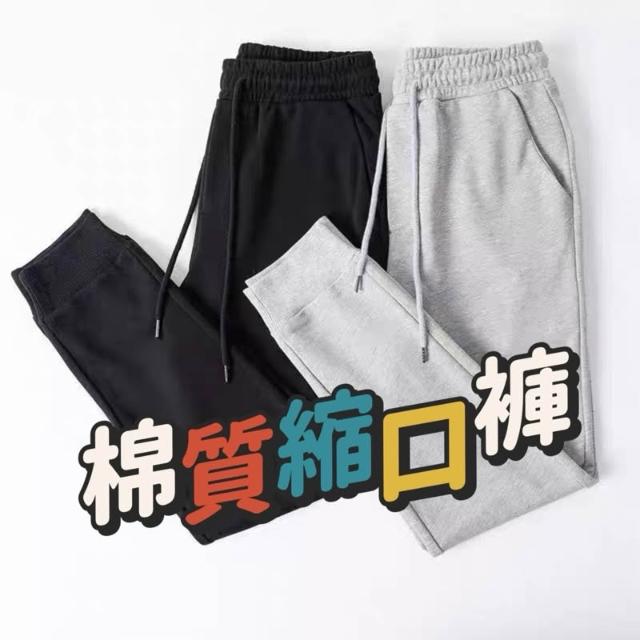 阿堯的店 圈毛薄款 95%棉質運動縮口褲 秋冬加絨褲 運動休閒束口褲 束口褲 棉褲 棉長褲 縮口褲男 【A006】