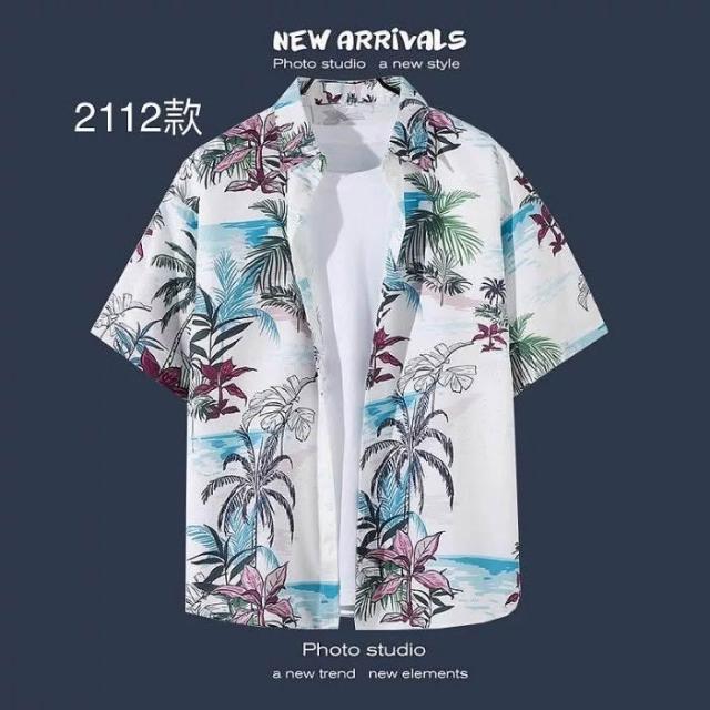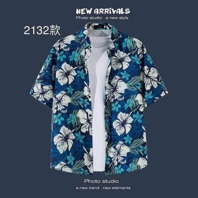 阿堯的店 男女花襯衫 海邊花襯衫 INS潮夏威夷風 沙灘花襯衫 春夏季短袖防曬外套 男女寬鬆情侶裝 度假旅行【FFCS】