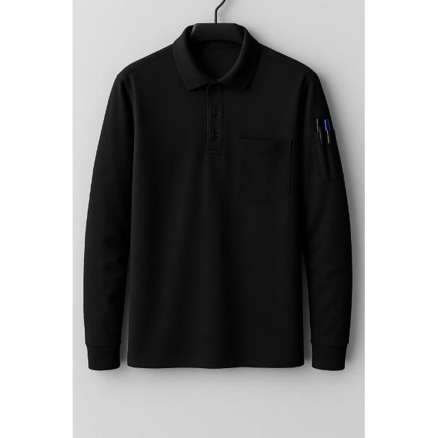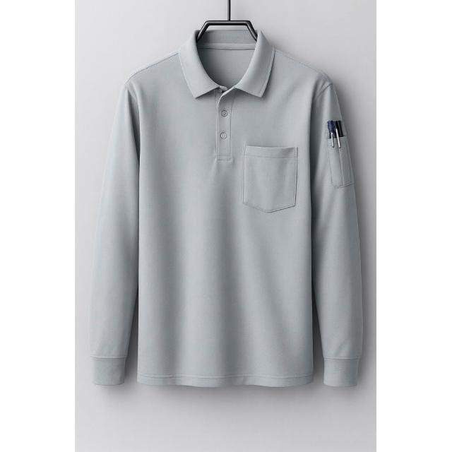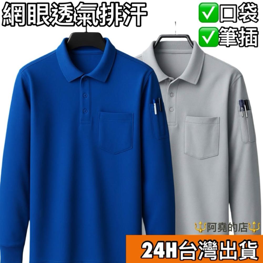 阿堯的店 大碼長袖網眼排汗polo衫 吸濕排汗口袋筆插polo衫 速乾工作翻領長袖上衣