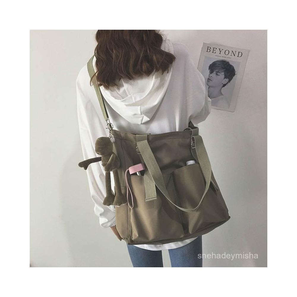 糖糖優選 防水包包大容量帆布包女斜挎韓版學生原宿日係單肩大包書包學院風