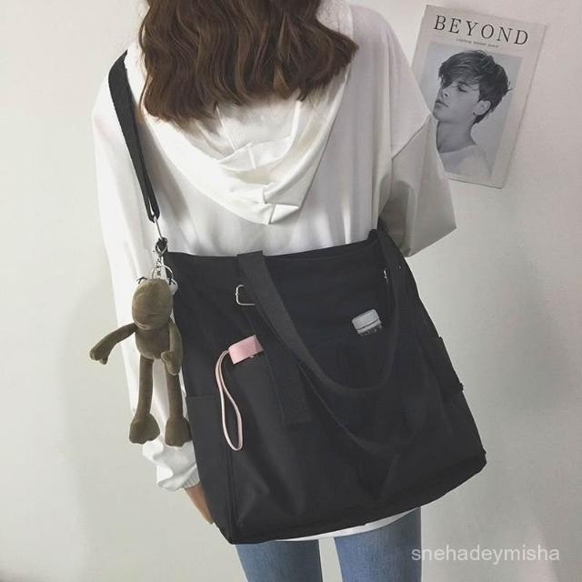糖糖優選 防水包包大容量帆布包女斜挎韓版學生原宿日係單肩大包書包學院風