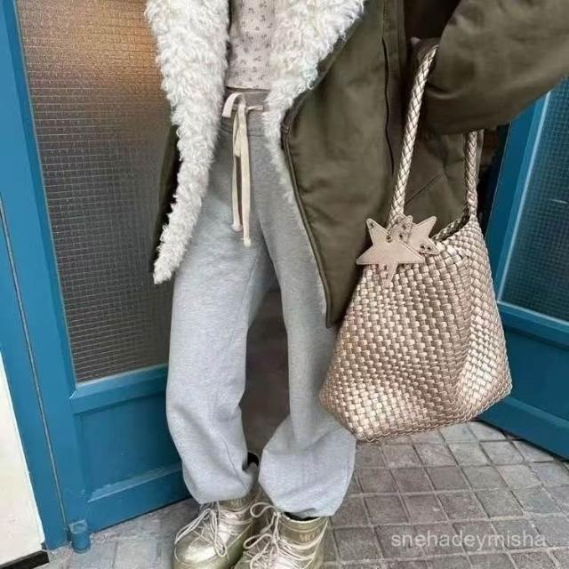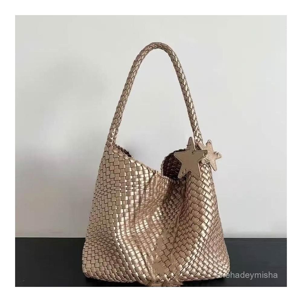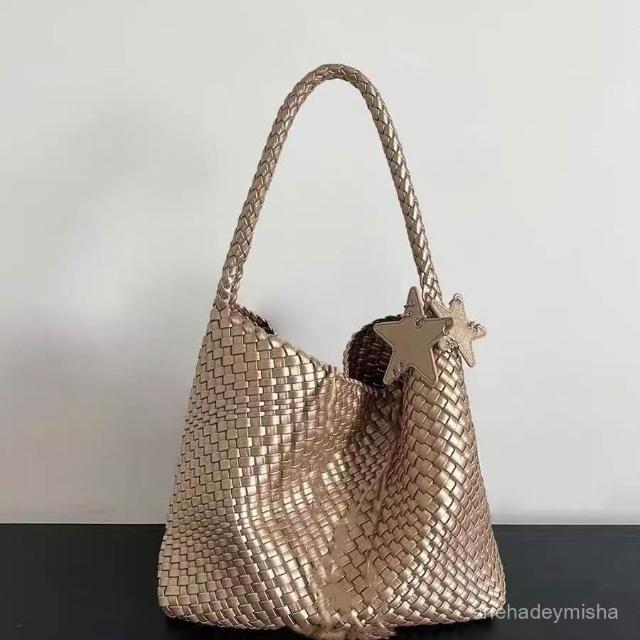 糖糖優選 槍槍衕款香檳色編織紋託特包包女大容量大包高級感手提單肩水桶包