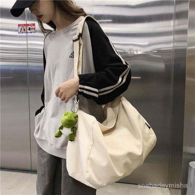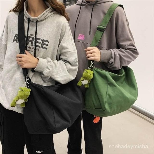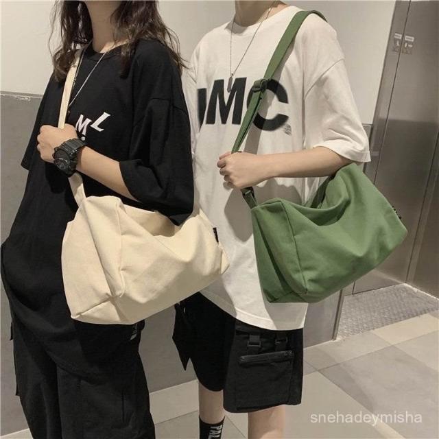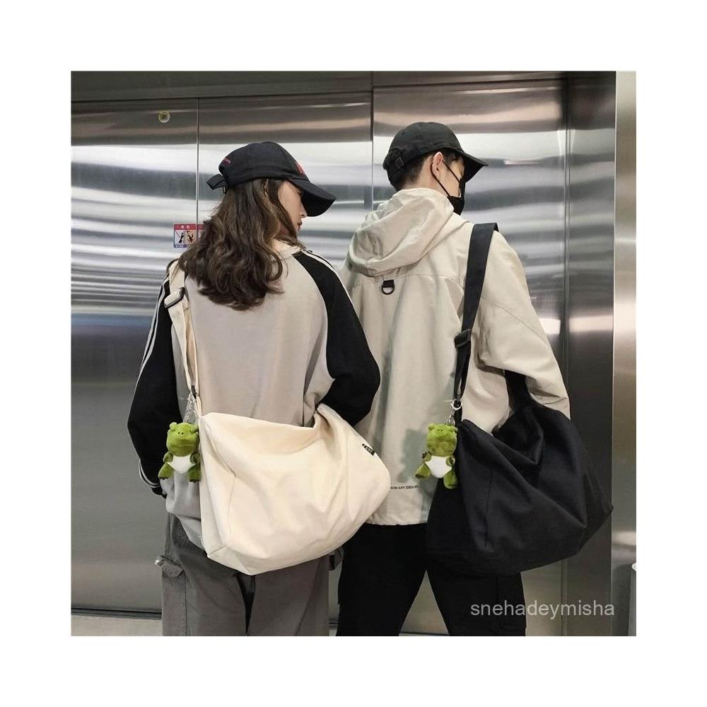 糖糖優選 ins潮牌斜挎包男帆布單肩包女生休閒百搭帆布包2024新款運動挎包