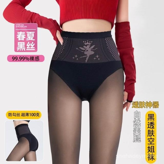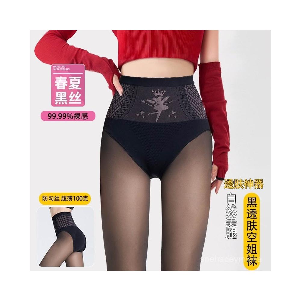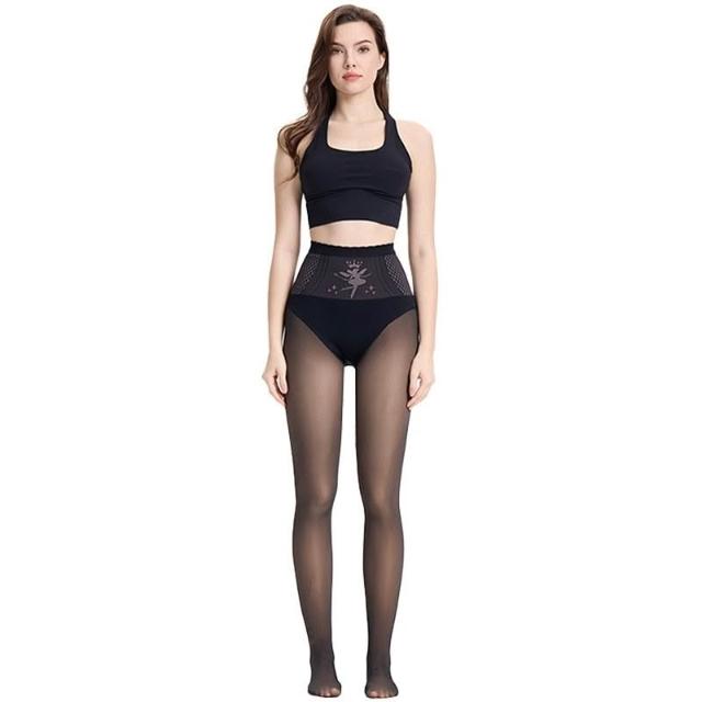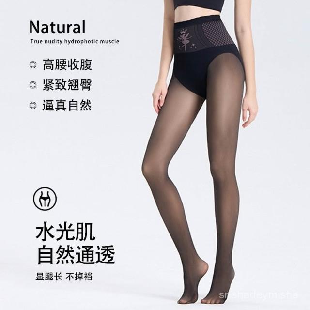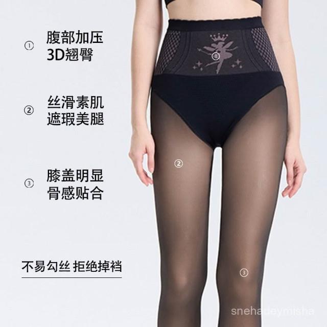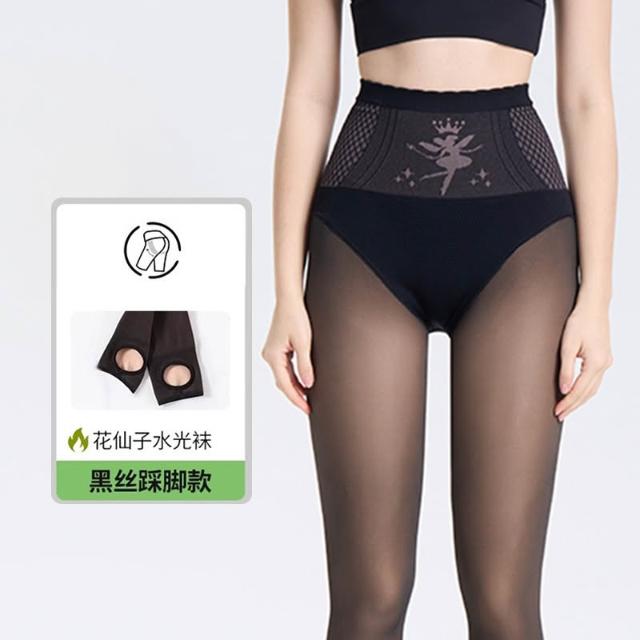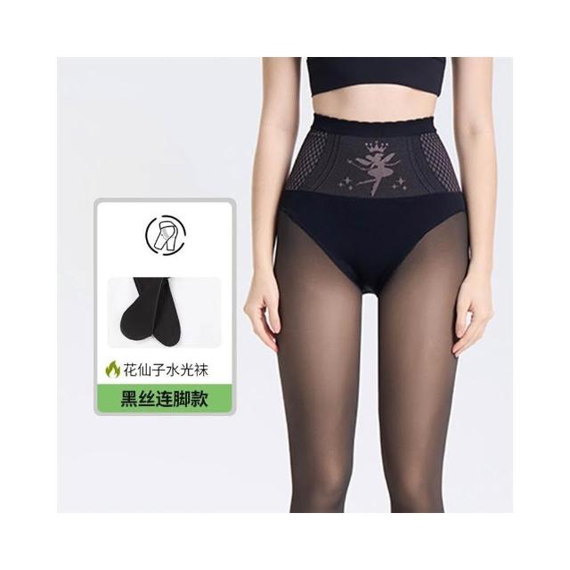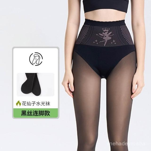 秋冬新款花僊子水光黑絲假透膚加厚加絨光腿襪神器連褲襪