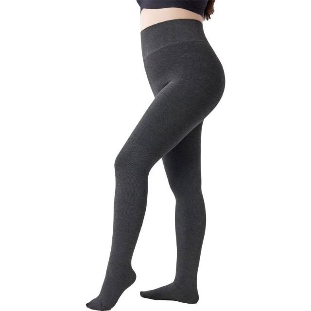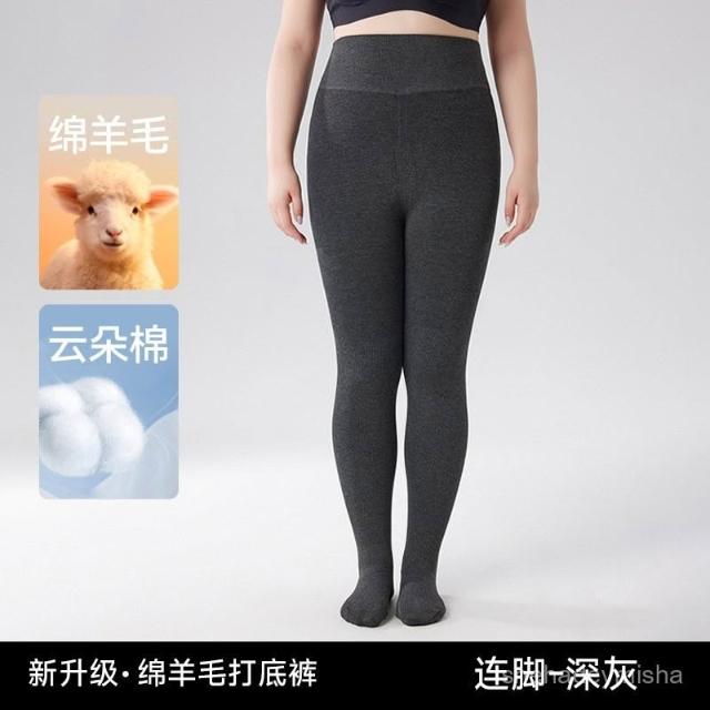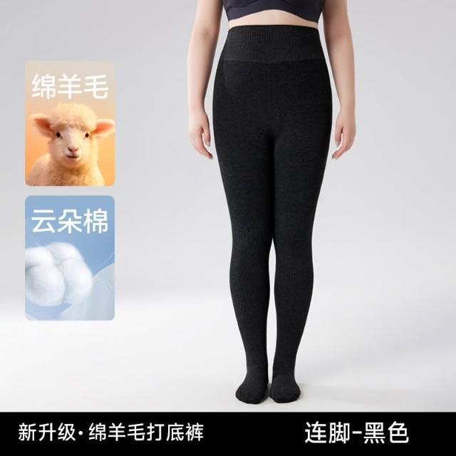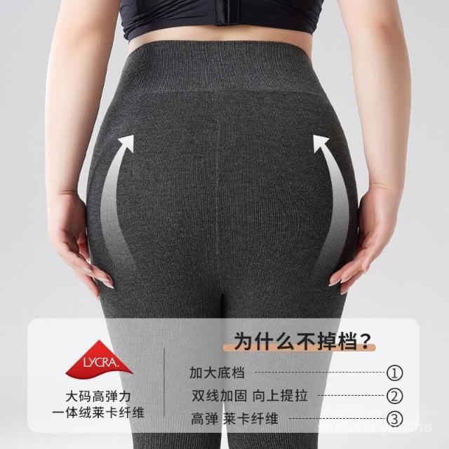 秋冬款加絨加厚全棉豎條紋打底褲外穿連腳保暖褲女一綫檔一體褲