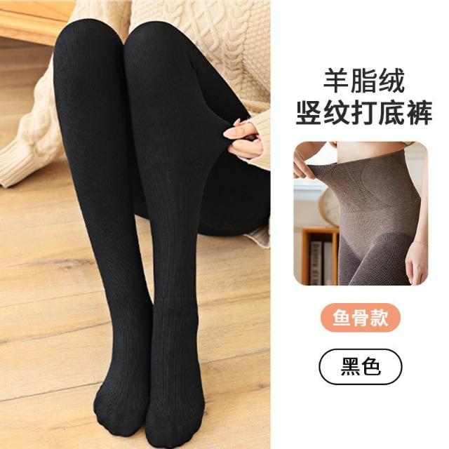羊絨打底褲女秋冬加絨加厚豎條紋微壓顯瘦外穿棉褲保暖踩腳連褲襪