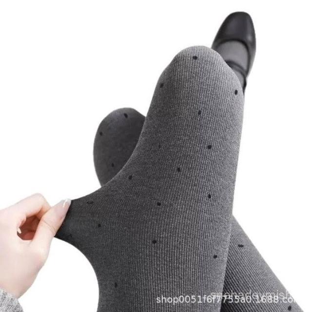 波點植絨連褲襪春秋冬加厚外穿中灰色女豎條紋顯瘦保暖打底襪絲襪