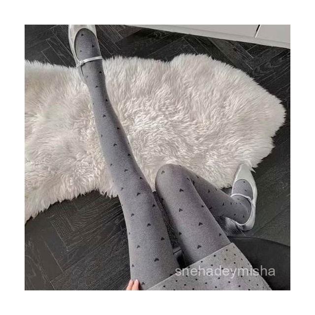 波點植絨連褲襪春秋冬加厚外穿中灰色女豎條紋顯瘦保暖打底襪絲襪