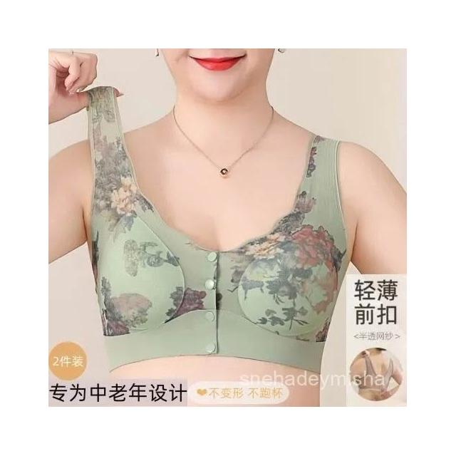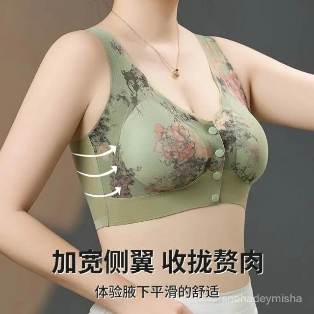 超輕薄前開扣內衣女中年媽媽無鋼圈上託防下垂網紗透氣大碼文胸罩