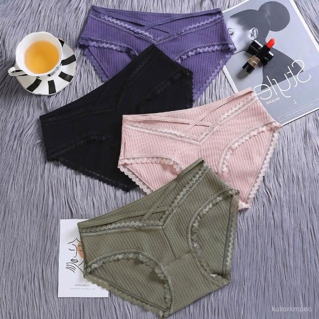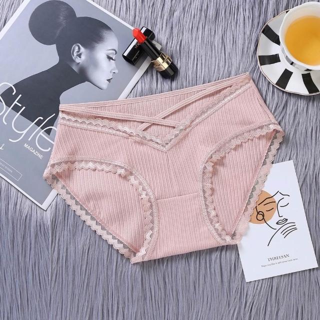 純純甄選 V字細帶性感女士低腰內褲女全棉抗菌檔蕾絲無痕學生韓版提臀三角