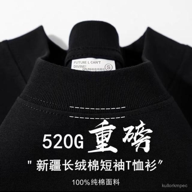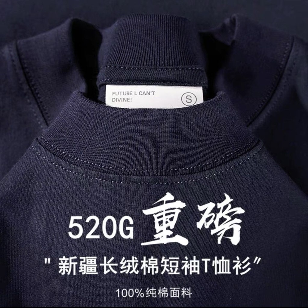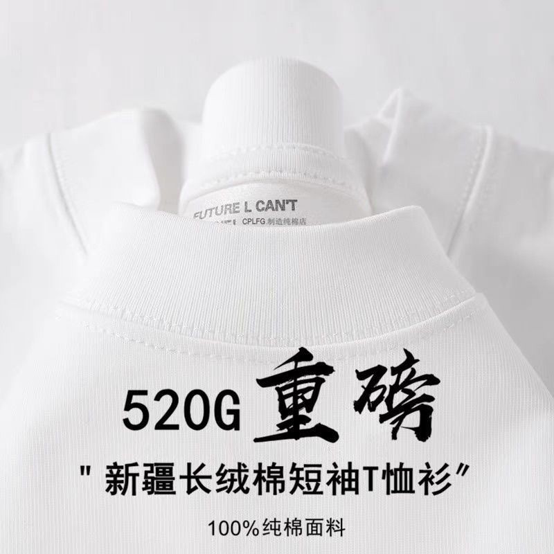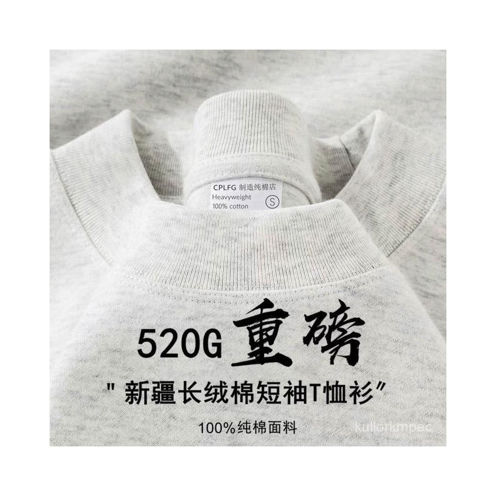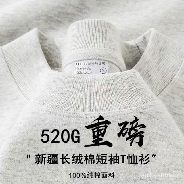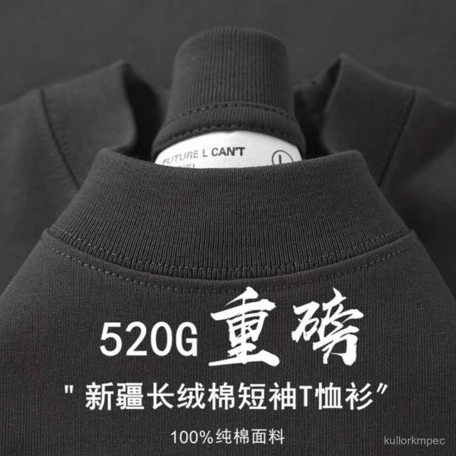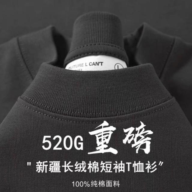 純純甄選 花灰色 520g重磅雙紗麵料純棉短袖T恤厚實不透百搭寬鬆圓領打底衫