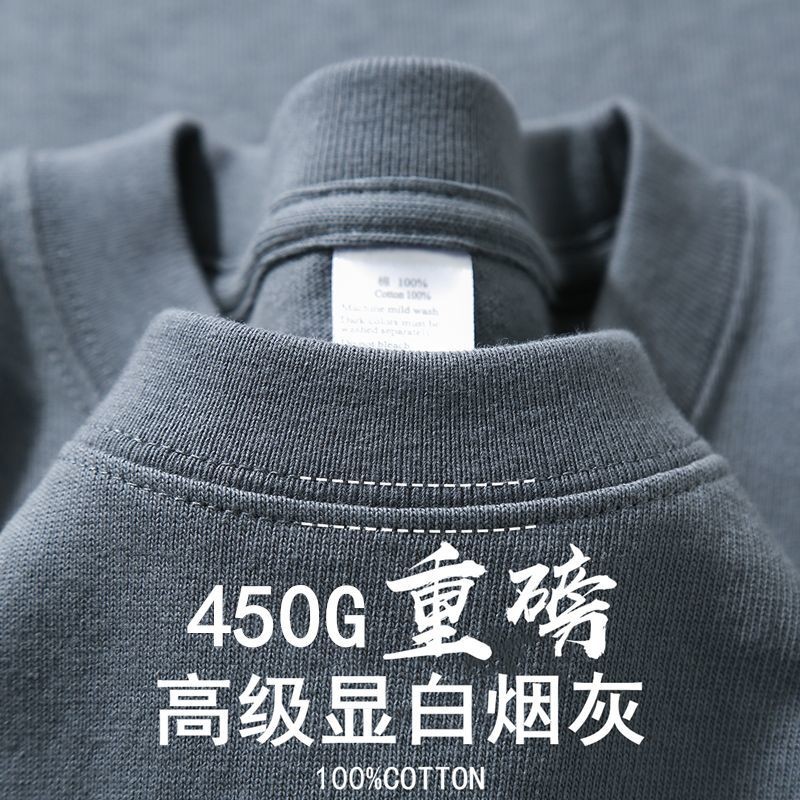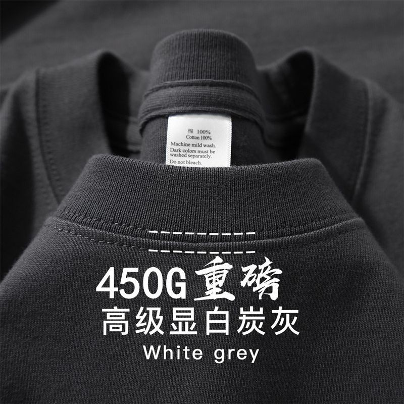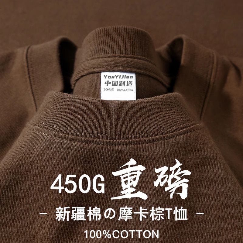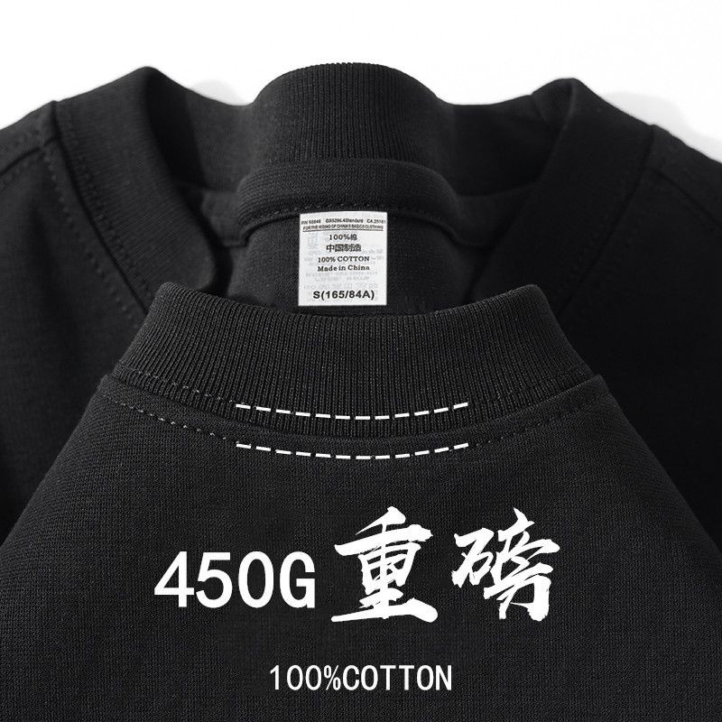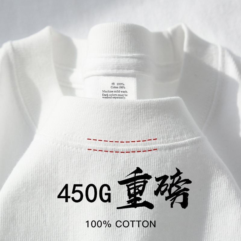 純純甄選 新疆棉 450g重磅純棉短袖T恤男女不透上衣夏季白色圓領寬鬆打底衫