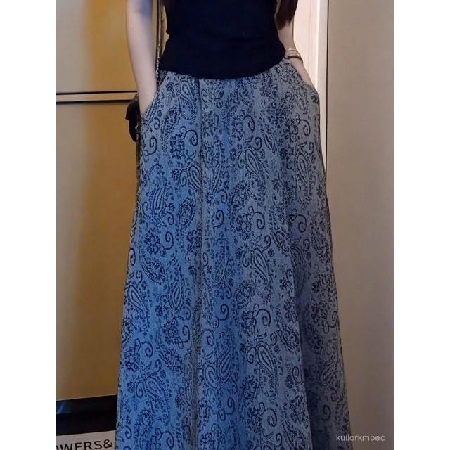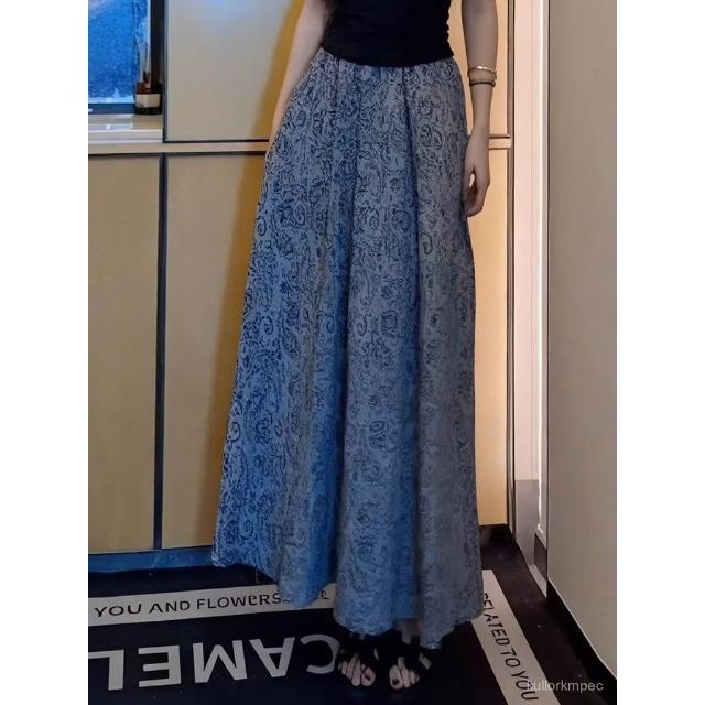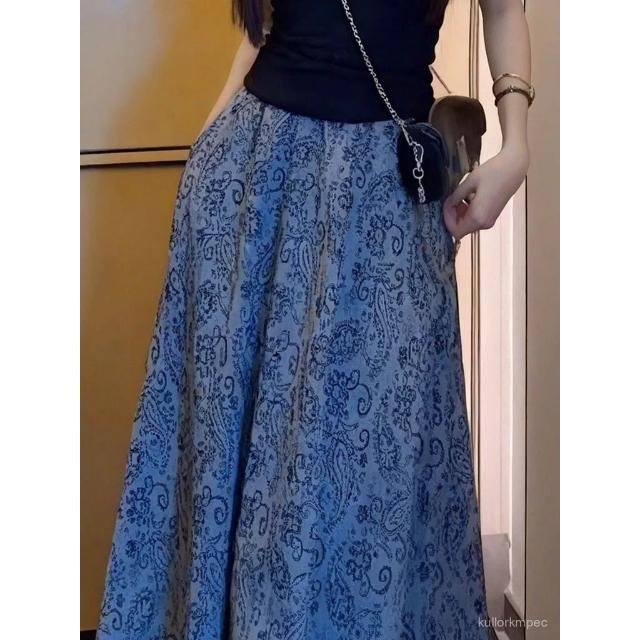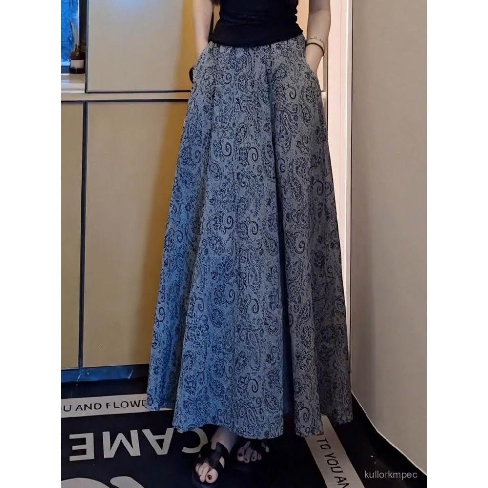 浩浩甄選 大碼2025夏季新款法式時尚淑女風印花半身裙女高級感鬆緊腰長裙子