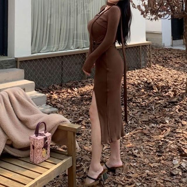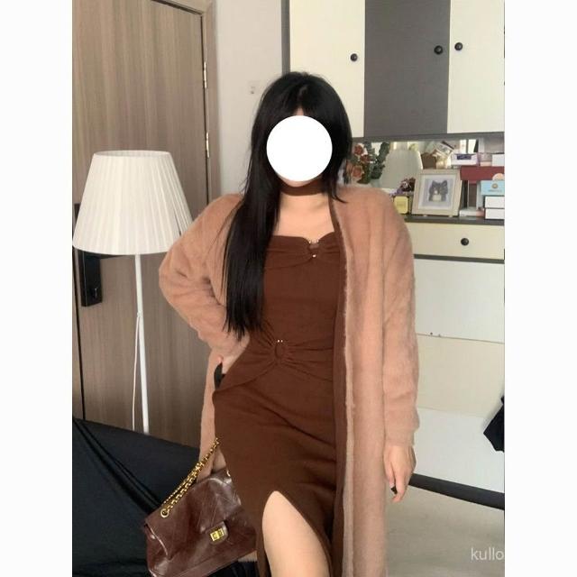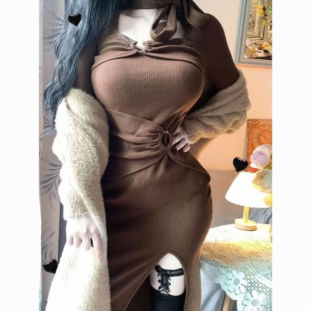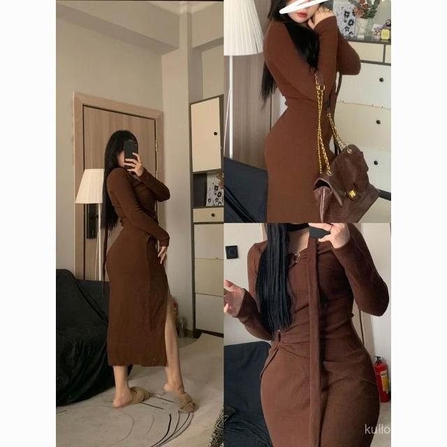 浩浩甄選 大碼女裝純慾風針織連衣裙秋冬胖mm顯瘦遮氣質長裙辣妹包臀裙子